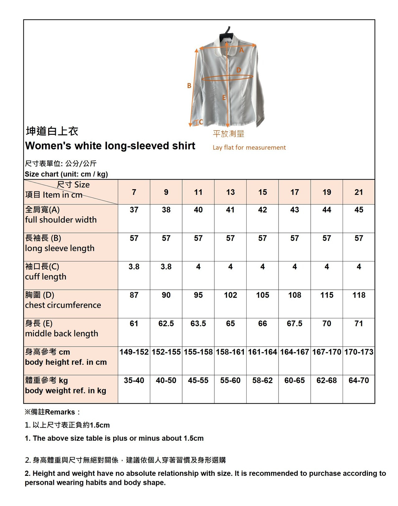 尺寸有分為7,9,11,13,15,17,19,21